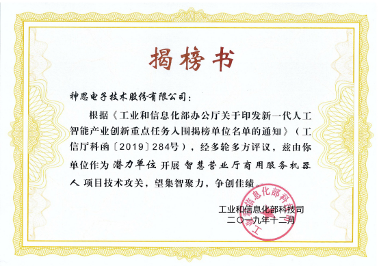近日,工业和信息化部办公厅印发“新一代人工智能产业创新重点任务入围揭榜单位名单”,山东省共8家企业入围重点任务榜单,恒峰国际电子获批潜力单位,开展智慧营业厅商用服务机器人项目技术攻关。