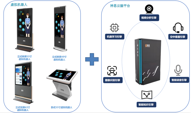 虚拟机器人融合语音识别、语义理解、人脸识别、知识管理等人工智能技术,通过视觉、语音等多模态实时交互技术,模拟真人动作,实现多轮自然语言会话功能。让用户真切感受到智能、高效、友好、无感的服务体验。